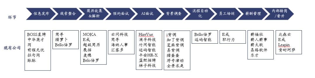 聘请设置装备摆设:招人渠道相对单一、简历来历匮乏、简历的实正在性未知、筛选简历尺度难同一、面试具有客不雅性;手艺赋能的人力资本办事市场也有较大空间:又好比简历筛选环节?