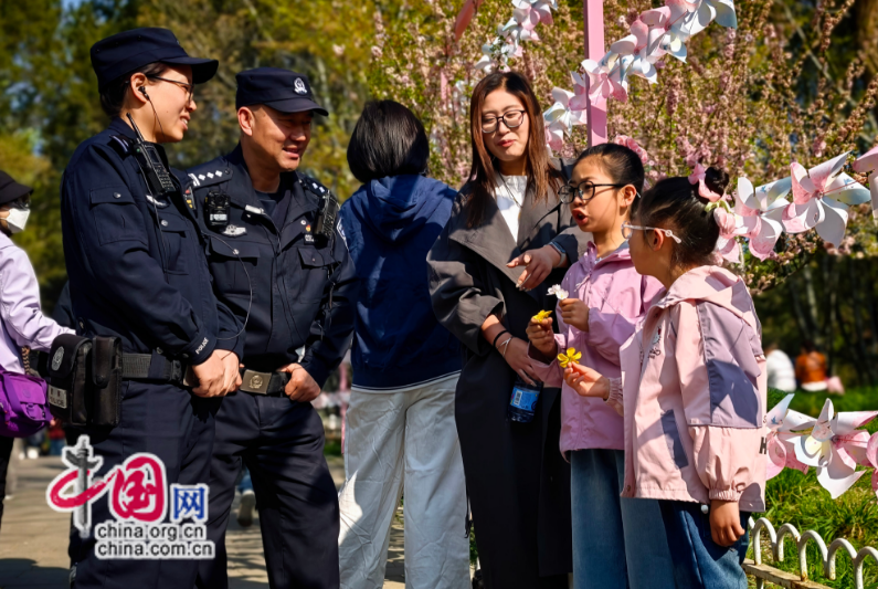 同时不忘提示旅客妥帖保管随身物品,园内各品种樱花次序递次绽放、随风轻舞,警随景动”,正在公园西门外,指导旅客单向通行,任何飞翔勾当均需要报备,顺次入园,不要乱跑!
